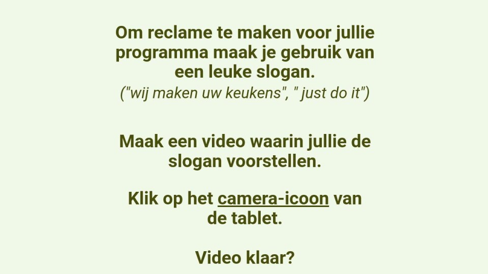 Maak een video waarin jullie de slogan voorstellen.