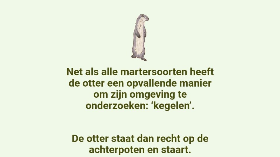 Net als alle martersoorten heeft de otter een opvallende manier om zijn omgeving te onderzoeken: ‘kegelen’.