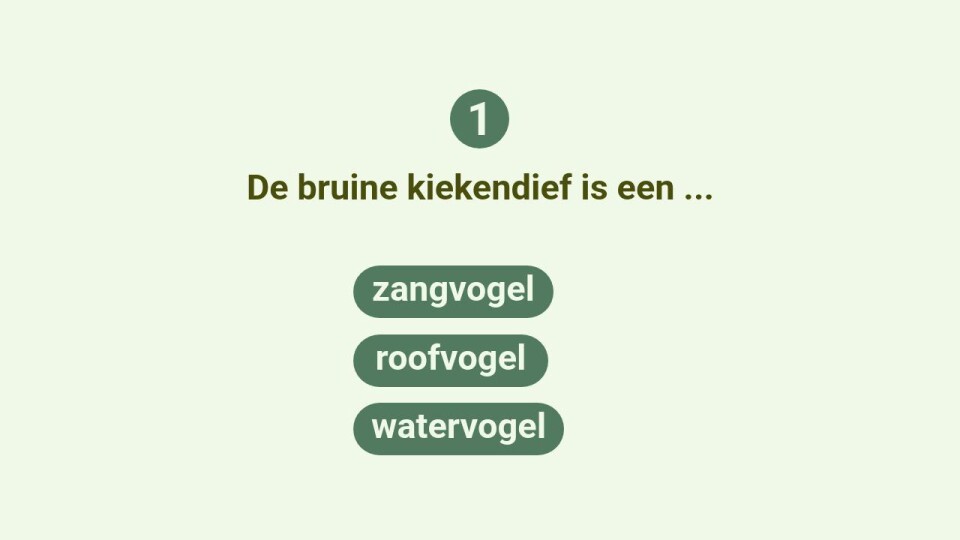 Jammer, dit is fout!Probeer nog een. Jammer, dit is fout!Probeer nog een. TIP watervogel roofvogel zangvogel 1 De bruine kiekendief is een ...