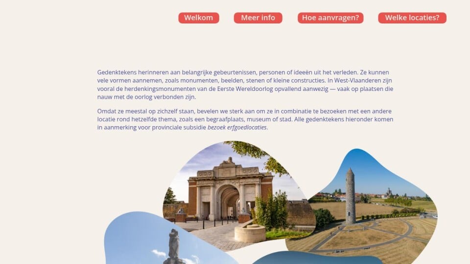 Omdat ze meestal op zichzelf staan, bevelen we sterk aan om ze in combinatie te bezoeken met een andere locatie rond hetzelfde thema, zoals een begraafplaats, museum of stad. Alle gedenktekens hieronder komen in aanmerking voor provinciale subsidie bezoek erfgoedlocaties.