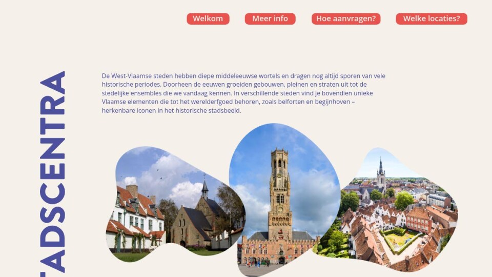 De West-Vlaamse steden hebben diepe middeleeuwse wortels en dragen nog altijd sporen van vele historische periodes. Doorheen de eeuwen groeiden gebouwen, pleinen en straten uit tot de stedelijke ensembles die we vandaag kennen. In verschillende steden vind je bovendien unieke Vlaamse elementen die tot het werelderfgoed behoren, zoals belforten en begijnhoven – herkenbare iconen in het historische stadsbeeld.