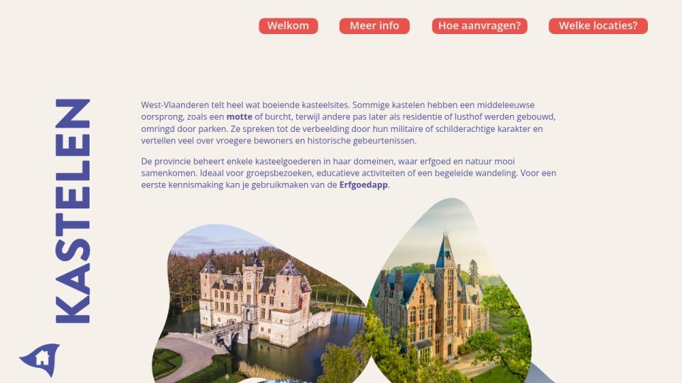De provincie beheert enkele kasteelgoederen in haar domeinen, waar erfgoed en natuur mooi samenkomen. Ideaal voor groepsbezoeken, educatieve activiteiten of een begeleide wandeling. Voor een eerste kennismaking kan je gebruikmaken van de Erfgoedapp.